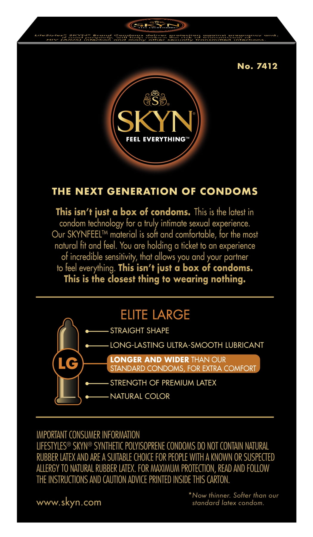 LifeStyles Skyn Large Condoms (12-Pack) from idealcondoms.caMade of skynfeel polyisoprene and based on skyn original, elite is i don't feel too comfortable leaving a review for a condom since it's kind of personal matter so i'll only say that the service was good and my order.